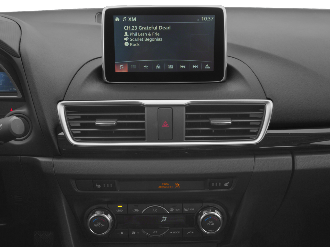 - Radio: AM/FM/CD/HD w/Single CD -inc: digital clock, auxiliary audio input jack, Bluetooth® hands free phone and audio and 2 USB audio input, Bose Surround Sound System, 9-speakers, Centerpoint 2 and AudioPilot 2, Mazda Navigation System, SiriusXM Satellite Radio, roof-mounted shark fin antenna and 4-month subscription, MAZDA CONNECT™ Infotainment System, voice-command, E911 automatic emergency notification, 7" full-color touch-screen display, multi-function Commander control, Pandora, Aha and Stitcher internet radio integration, Radio Broadcast Data System program information and SMS text message audio delivery and reply