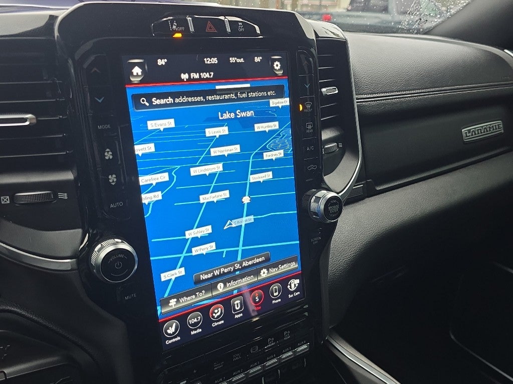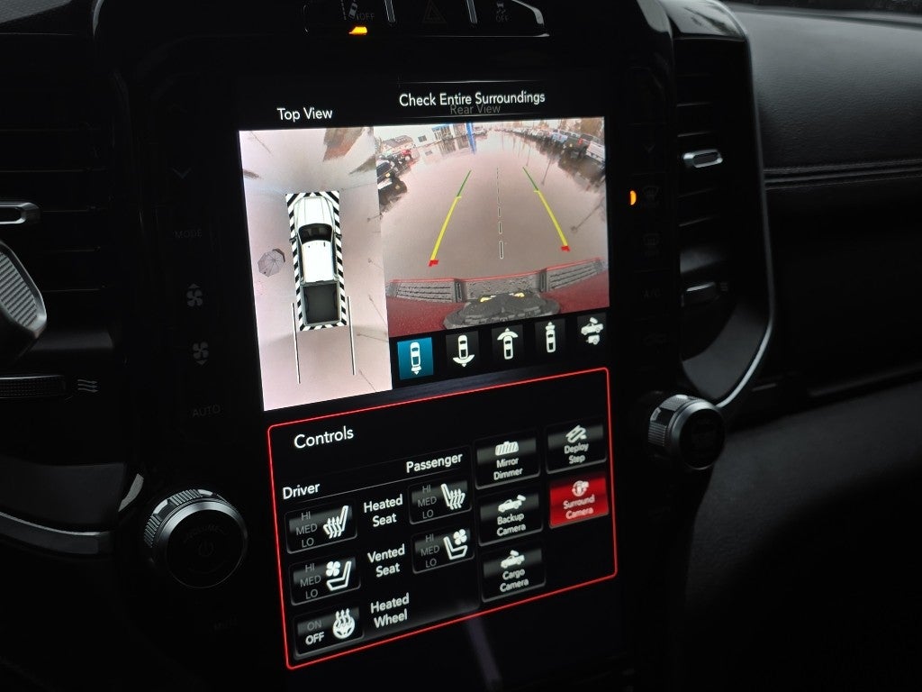 Quick Order Package 2HH Laramie. Laramie Level 2 Equipment Group: Remote Tailgate Release; 17 Speaker Harman Kardon Premium Sound; Auto High Beam Headlamp Control; Blind Spot and Cross Path Detection; Rain Sensitive Windshield Wipers; Power Adjustable Pedals with Memory; Heated Second Row Seats; Foam Bottle Insert (door Trim Panel); 2nd Row in Floor Storage Bins; Radio/driver Seat/mirrors/pedals Memory; Ventilated Front Seats. Night Edition: Mirror-Mounted Aux Reverse Lamps; Black Ram Head Tailgate Badge; 20" X 8.0" Black Painted Aluminum Wheels; Black Headlamp Bezels; Body Color Door Handles; Painted Front Bumper; Painted Rear Bumper; LT285/60R20E OWL On/off Road Tires; Black Exterior Truck Badging; Exterior Mirrors with Memory; Gloss Black Grille Billets/accents; Body Color Grille Surround; Black Interior Accents; Black Exterior Mirrors; Black Tail Lamp Bezels; Power Black Tow Mirrors with Convex Spotter and Memory; Power Adjustable Convex Aux Mirrors. Safety Group: Adaptive Cruise Control with Stop; Digital Rearview Mirror; Adaptive Steering System; Full Speed Forward Collision Warning Plus; Lane Keep Assist. Towing Technology Group: Center Stop Lamp with Cargo View Camera; Surround View Camera System; Blind Spot and Cross Path Detection; Trailer Reverse Guidance. RamBox Utility Group: Truck Bed Cargo Divider; 4 Adjustable Cargo Tie-Down Hooks. Bed Utility Group: MOPAR Spray in Bedliner; MOPAR Deployable Bed Step; LED Bed Lighting. DOT Certified Roadside Safety Kit: 3 Reflecting Triangles; Spare Fuses; DOT Fire Extinguisher; 2 Red Vinyl Flags. Protection Group: Tow Hooks; Transfer Case Skid Plate Shield. Uconnect Radio 12.0 with Navigation. Auto Level Rear Air Suspension. Power Sunroof. Power Deplo