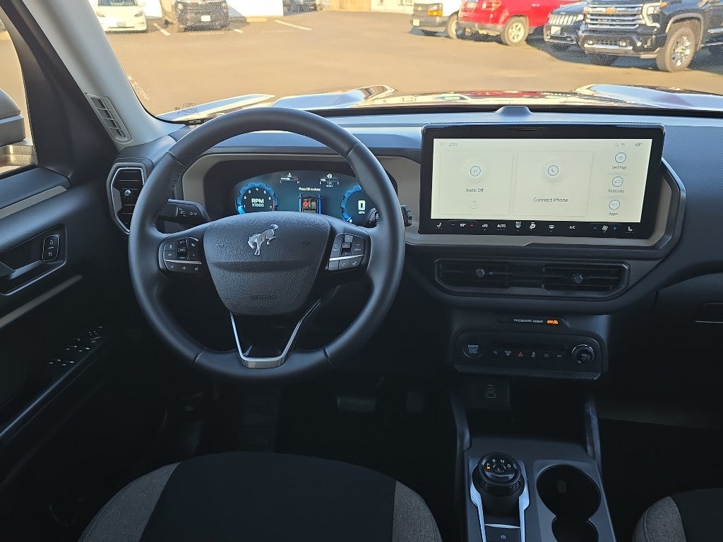 This vehicle offers Apple CarPlay for seamless connectivity. The rear parking assist technology on the vehicle will put you at ease when reversing. The system alerts you as you get closer to an obstruction. Start this model from inside with remote start. The Ford Bronco Sport offers Automatic Climate Control for personalized comfort. It has a clean AutoCheck report, ensuring its impeccable vehicle history. Bluetooth® technology is built into this Ford Bronco Sport, keeping your hands on the steering wheel and your focus on the road. It has auto-adjust speed for safe following. This vehicle comes equipped with Android Auto for seamless smartphone integration on the road. See what's behind you with the back up camera on this 2025 Ford Bronco Sport . This Ford Bronco Sport gleams with a flashy red exterior. This 2025 Ford Bronco Sport has a 3 Cyl, 1.5L high output engine. Maintaining a stable interior temperature in the Ford Bronco Sport is easy with the climate control system.